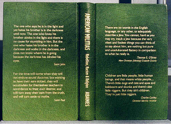 Bound in green Nigerian Goatskin, with quotes from the book stamped in 23K gold. Endpapers are Rives BFK, printed on an Epson Stylus 1500 inkjet, and shot at 50 yards with a Ruger 10/22 semiautomatic rifle. 9 1/2" x 6 1/4".