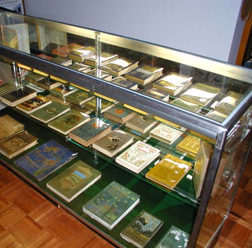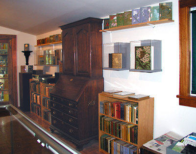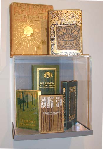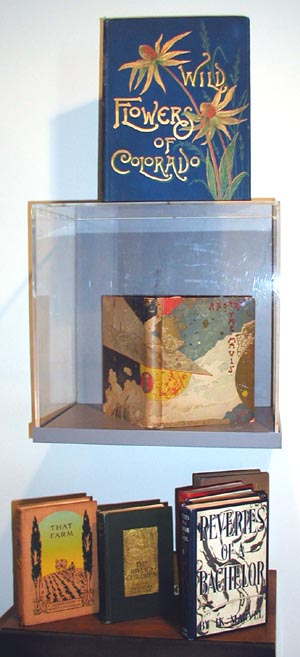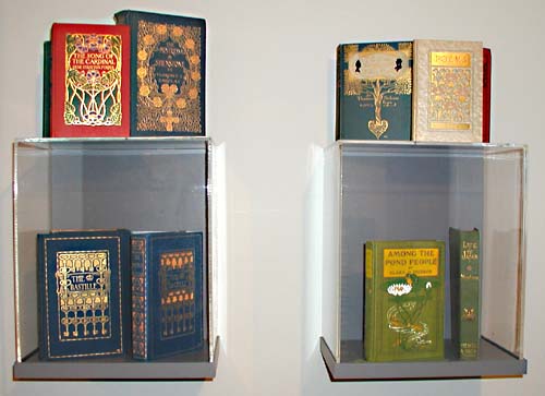 Thank you for visiting the online gallery. Through August 2005, the exhibition was American Decorated Publishers' Bindings 1872-1929. There were 500 books on display. A catalog is available. Scroll down the page to see photos of the gallery installation and the bindery.