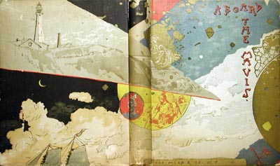 Above: The woods are as compelling a subject as the sea, and Will Bradley might be credited with the first use of this motif, inspired by seeing an autumn hillside and silver sky through the trees while under commission from Stone and Kimball to design In Russet and Silver (1894), Above it is Amy Sacker's 1902 design for The Kindred of the Wild. To the left is the unsigned 1903 binding on Hesper, and to the right a gold crescent moon and stars seen through evening woods on the unsigned 1907 cover of God's Calendar.