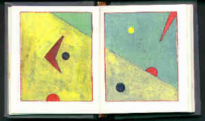 79 linoleum block color field prints based on Jackson's unique handmade book of poems and pastels, with 12 pages of words printed offset from handset Goudy type. Includes score for performance (words by Jackson, music by Minsky) and LP recording. Edition of 50 books, 100 records. 1973.