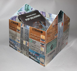 The Hardcover Edition of 25 copies has a printed sculptural "House of Cards" enclosure the same size as the original Pop Delusions (9"x9"x9") and is made from photographs by Minsky of the original Pop Delusions House of Cards. The Deluxe edition includes a wood base covers in US$10 bills, similar to the original work, a copy of Charles Mackay's Extraordinary Popular Delusions and the Madness of Crowds, and a Minsky credit card.