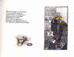 This book is based on Tom Phillips' 1988 collage work "The Classof 47", which was exhibited in London at the National Portrait Gallery (see catalog "Tom Phillips -- The Portrait Works," NPG 1989, pp. 14-15).Tom Phillips sent copies of the 31 images to American poet Heather McHugh, who wrote poems about them. Tom then took these poems and transformed them by painting out some of the words. His new text sometimes reaffirms and other times contradicts the poet's interpretation of the pictures. Each page of handmade paper contains the image, expanded and revised both by hand and computer, and hand painted in watercolor following the artist's prototype. The poem is set in 14 pt. Bookman Light Italic,and the manipulated text appears as a footnote, also hand colored. This edition is published jointly by The Talfourd Press in London and Richard Minsky in New York, and is limited to an edition de tête bound in leather of 10 copies numbered I-X and 47 copies bound in cloth numbered 1-47. 1990.