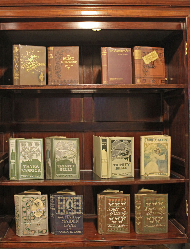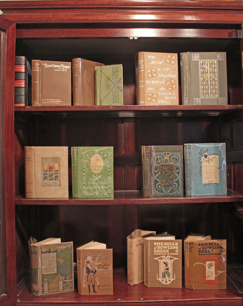 The cabinet above includes some of the earliest bindings and covers by