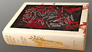 Calf, gold, panel of 8-point type, acrylic paint, artist's blood on Vermont