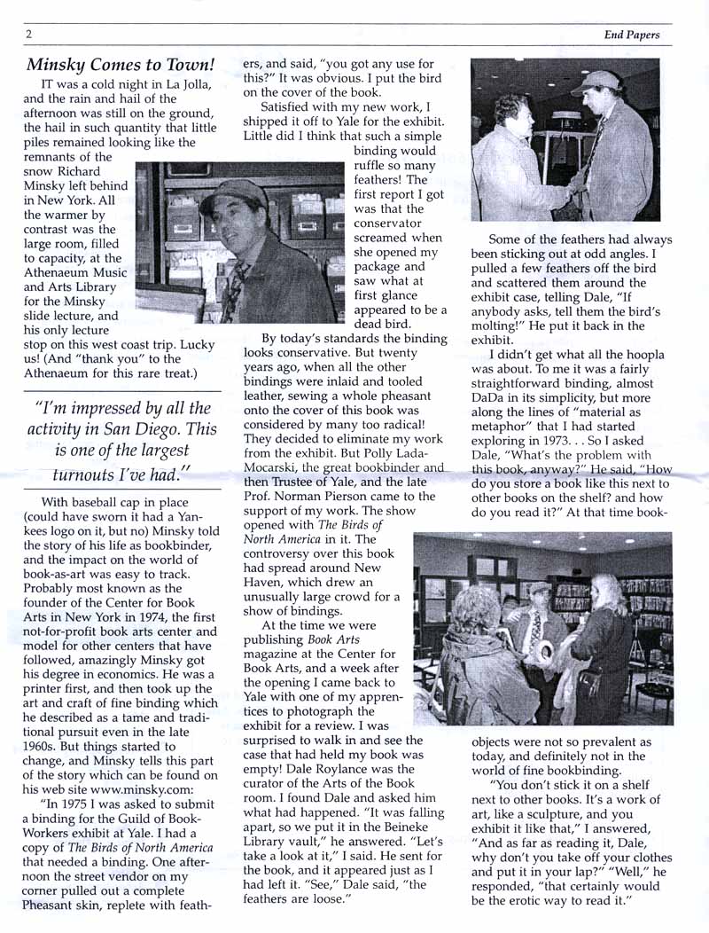 From: Vernal Equinox 2001 edition of End Papers, the newsletter of San Diego Book Arts