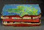 The author was Chairman of the Executive Committee of the Food and Agriculture Organization. His conclusion is that the countries of the world are all capable of feeding their starving populations, but don't for political reasons. The binding is moulded and carved plastic, with a world map in acrylic paint-- the mouth of the world. The endpapers are labels from food cans bought at my local bodega, from countries where the people are starving and we get their food, and labels from Mighty Dog Gourmet Dog Food, because in this country there are old people who eat dog food and dogs who eat better than many people in the world.
