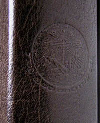Above: The Franciscan Arms blind-stamped on the spine of the girdle book cover.